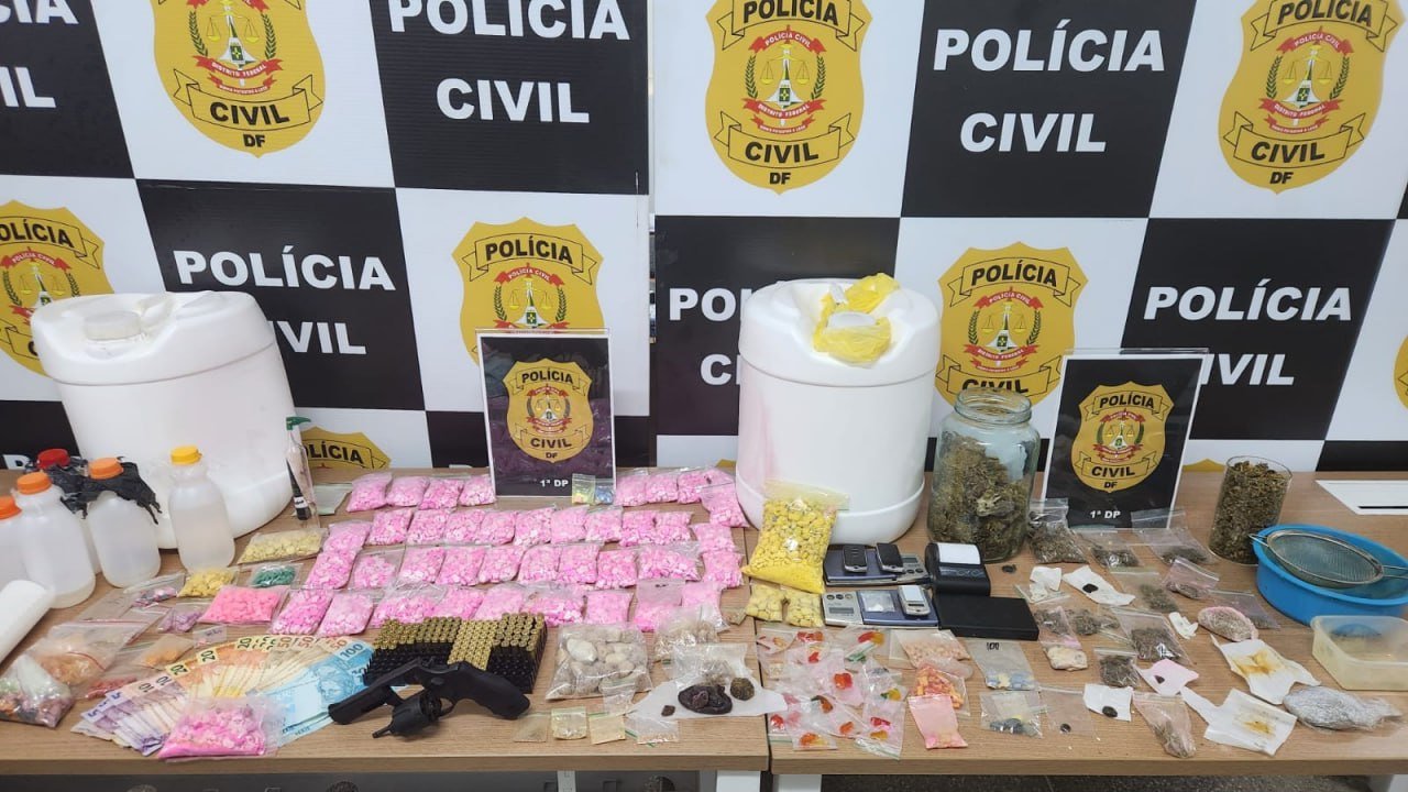 Em seguida, a polícia se dirigiu ao endereço onde as drogas eram armazenadas, em Valparaíso de Goiás, e encontrou uma grande quantidade de entorpecentes. Foram apreendidos mais de 5 mil comprimidos de ecstasy, cristais de MDMA, 40 litros de lança perfume artesanal, haxixe, LSD, skunk, balanças de precisão, um revólver municiado e munições calibre .9mm.