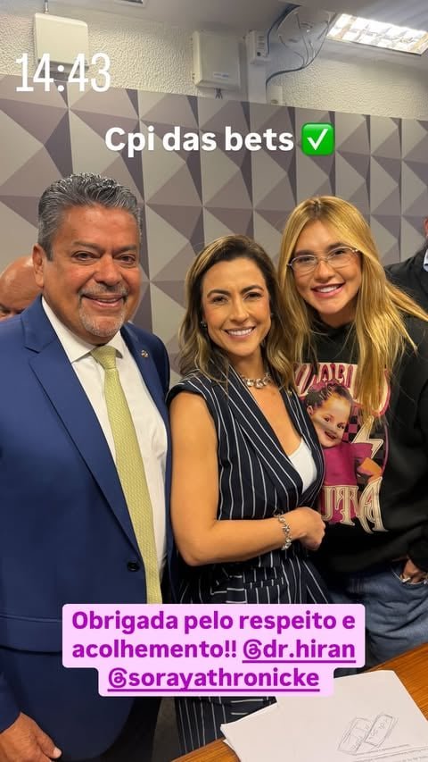 Em sequência, a influenciadora gravou um breve vídeo explicando a situação. “Fiquei sumidinha aqui porque acho que vocês já sabem, estava lá na CPI das Betes”, começou.